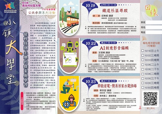 員永村社區大學 114年度秋季班公共參與系列活動🌱小鎮大學堂:從科技到土地的探索與學習🌱