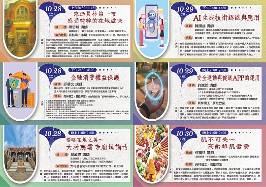 當代社會變遷快速,你是否曾思考,哪些知識與能力能幫助我們成為更有行動力與判斷力的公民,同時與在地社區建立更深的連結?這系列活動以「參與地方公共事務 × 公民素養提升 × 在地文化探索 × 生活實用技能」為核心,從鐵道沿線的社區走讀、員林第一市場的風味體驗,到大村慈雲寺廟埕的說古談今,帶領你認識在地發展脈絡,理解社區的需求與資源,進而思考個人在公共事務中的角色與可能性。面對數位時代的挑戰,我們也安排了「生成式AI的應用與倫理、手機影音剪輯與公共議題表達、健康App應用與提升數位健康素養、居家水電簡修與永續生活實踐」等課程,協助你將科技轉化為公共參與的工具。此外,針對高齡營養與金融消費權益等議題,也將由專業講師引導,強化資訊辨識力與生活決策力,提升對社會議題的敏感度與參與意識。這不只是學習課程,更是一場從生活出發的公民實踐。讓我們在探索、對話與行動中,共同打造更有韌性與共好的社區生活。