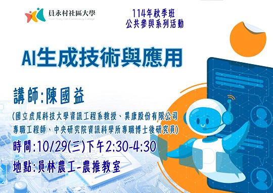 📍活動地點:員林農工-農推教室(汽機車請停放至校外,由員農西側-「農業教育推廣中心」門口進入)