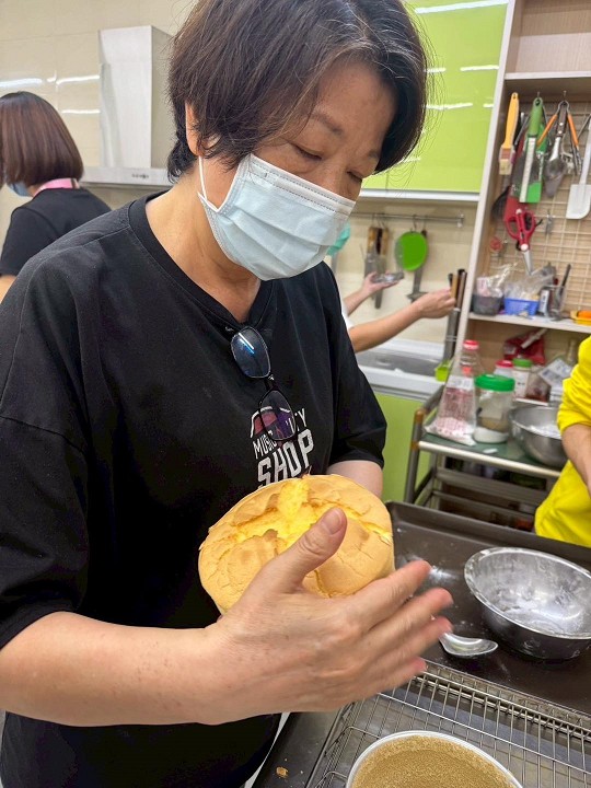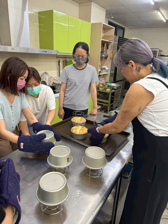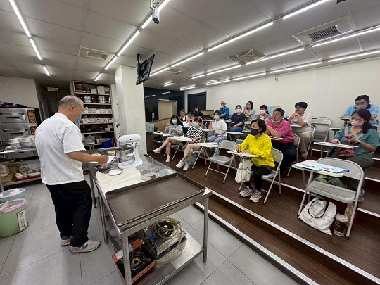 #吳武才老師「西點烘焙」透過實作理解烘焙背後的原理,學員們動手實作糖、油、麵粉的黃金比例,在揉、壓、折的過程中感受烘焙的樂趣。